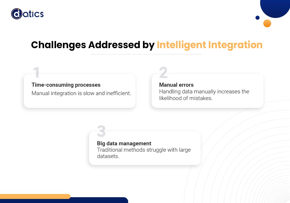 Smart integration is a modern way to process data, using Artificial Intelligence (AI) and Machine Learning (ML) to improve digital tasks. This new method helps overcome typical integration issues like time-consuming processes, manual errors, and managing big data. At the heart of intelligent integration lie AI and ML algorithms, empowering systems not only to execute routine tasks automatically but also to make sophisticated decisions based on patterns and insights extracted from the data.