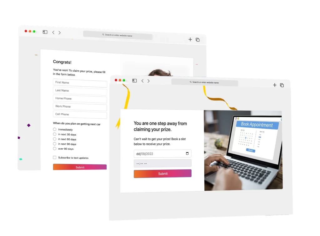 Customers are prompted to claim a free gift and provide insights into their vehicle preferences and purchase timeline, enabling dealerships to tailor their approach and follow up with personalized reminders.